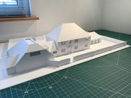 ‘Lock Cottage’ is a 1:50 scale model of an existing home in the west midlands. The model was developed from photographs and some basic ground measurements. Made from foam-core, this approach provided a cost effective working model for future design and development planning. The roof areas are removable allowing for internal floor layout planning.