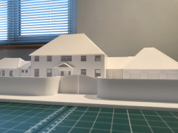 ‘Mill Lane’ is a 1:50 scale model of a proposed major refurbishment and extension project. The model was developed from a set of simple architectural sketches and some basic ground measurements. Made from foam-core, each of the 3 floors are removable showing individual room layouts. All roof areas are removable allowing for internal floor layout and planning.