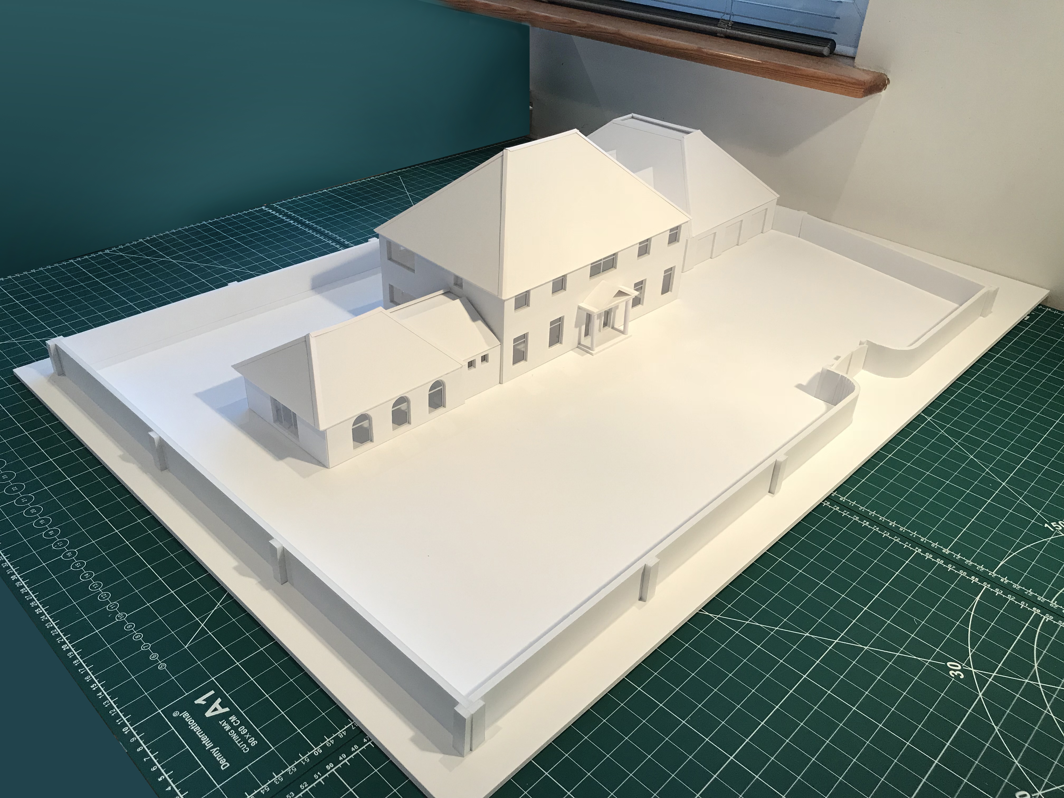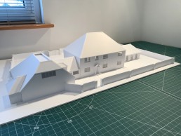 ‘Ravens Road’ is a 1:50 scale model of a 1930’s semi-detached dwelling. The model was created to show the addition and a side dormer and ground floor extension project. Made from foam-core, the model provided a cost effective and flexible model for design and planning purposes. Each element of the extension is removable allowing the dwelling to be seen ‘before’ and ‘after’ the development