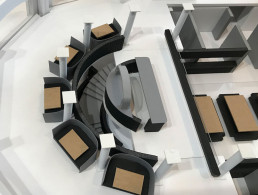 ‘Shelter Hall, Brighton’ is a 1:50 scale model. Made from foamcore for a proof of concept design stage. Each level can be removed revealing layout and structure of each lower level.